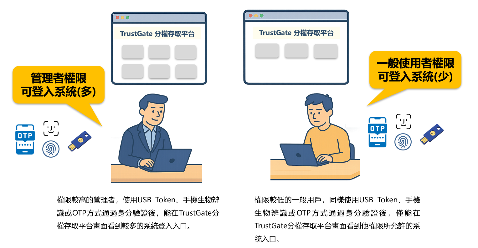 想像一個平台,能整合所有內部系統,讓登入與控管變得輕鬆高效——這就是 TrustGate 分權存取平台。