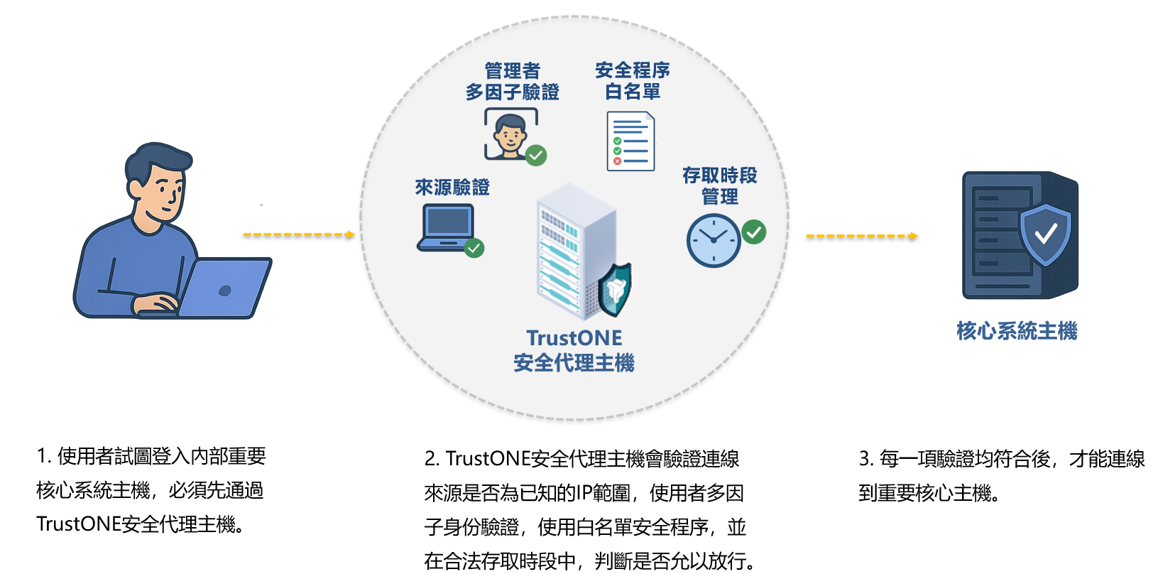 3. 三項驗證均符合後,才能連線到重要核心主機。