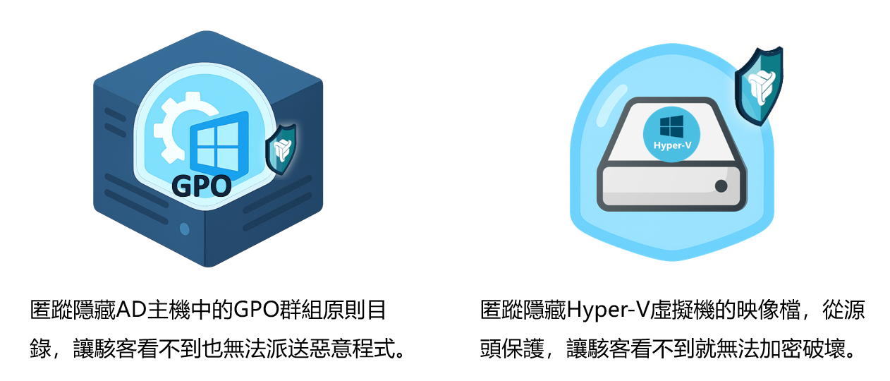 匿蹤技術進一步延伸防護邊界,將 AD 主機中的 GPO 群組原則目錄完全隱藏,徹底阻斷惡意程式派送與橫向滲透的風險。