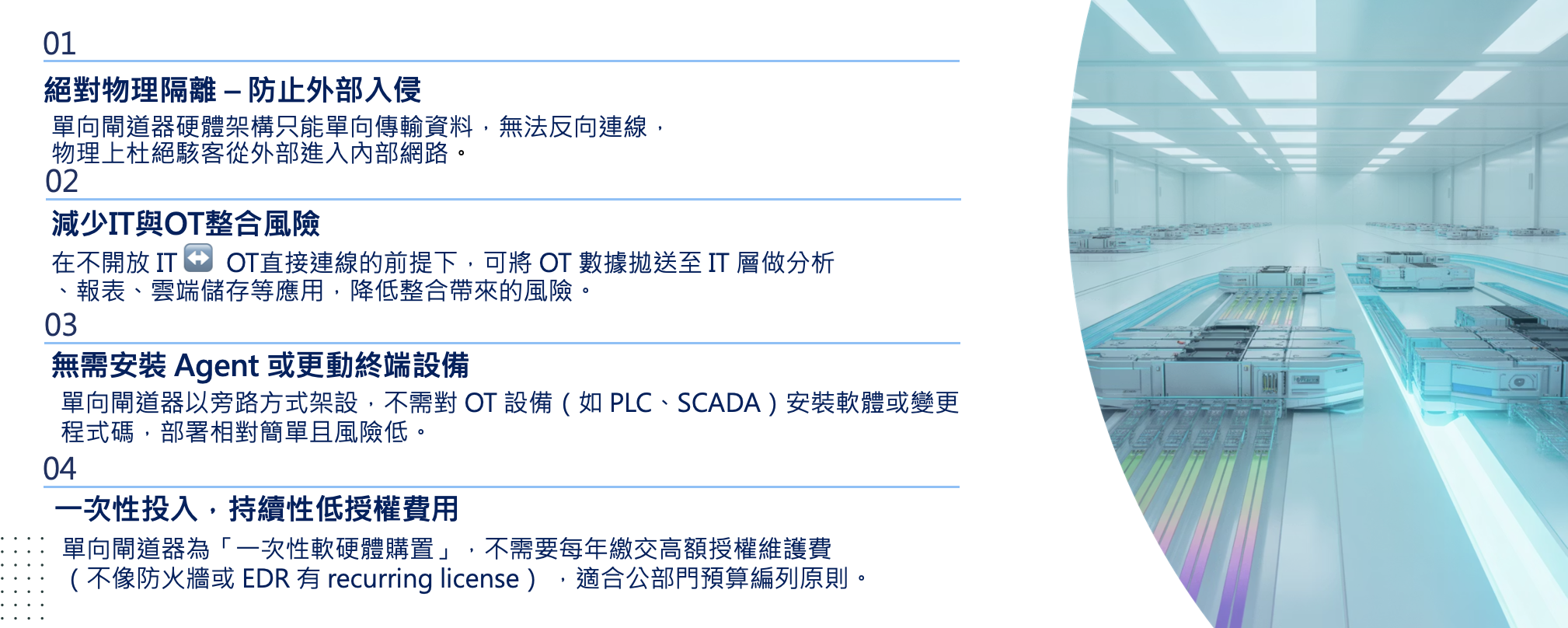 適用於政府、能源、工控與關鍵基礎設施,讓 OT/IT 整合既安全又高效。
